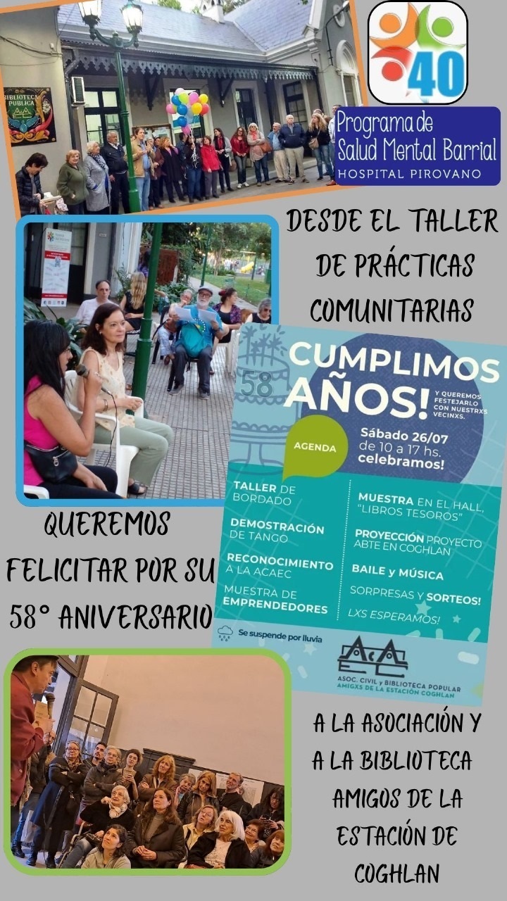 Desde el Taller de Prácticas Comunitarias saludamos por el 58 aniversario a la Asociación y...